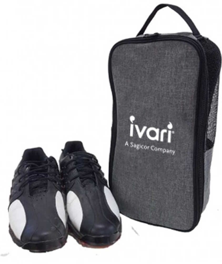 Classic heather shoe bag - dual zip closure. Top carry handle. Double sided vents to ensure air flow. 300D heather polyester and 600D polyester construction. Ideal for golf tournaments and travel programs.