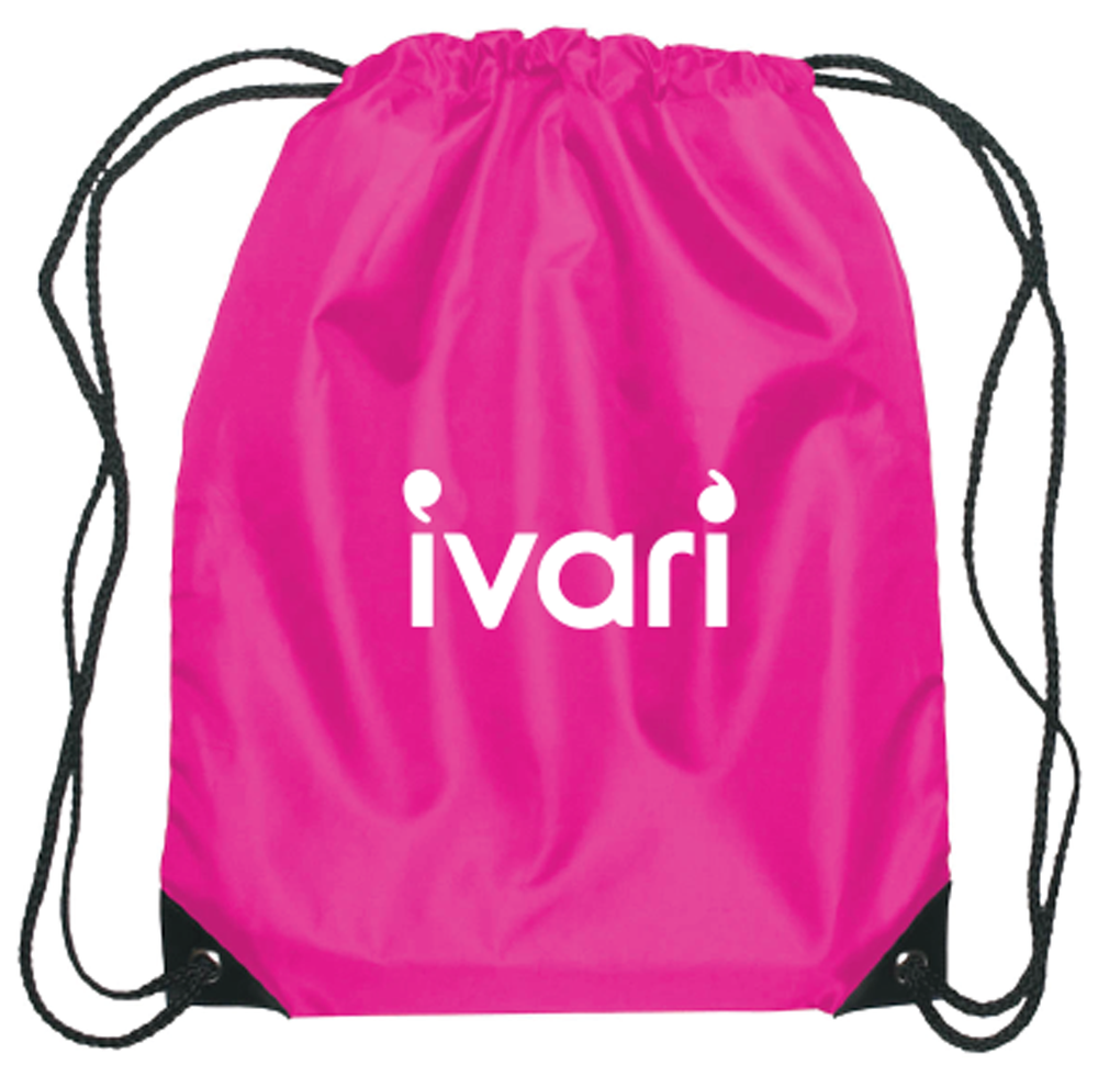 Includes Ivari branding printed on the front of the bag. Available in both blue and pink.